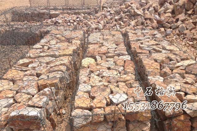 3、地基準備:放置格賓網的地基無需太平實。在地基環境比較差的濕地環境中,格賓網可以用來提供固定式平臺。根據工程需求,裝入適當的材料,層層放好格賓網箱。格賓結構也要符合工程規范。可以把土工織物夾在各個格賓層中。